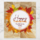 Enjoy a taste of Thanksgiving and unity with our exquisite personalised Thanksgiving wine labels. Handcrafted lettering harmonises beautifully with a sleek and modern sans-serif font, creating a perfect fusion of contemporary styles. Within a clean white circle, you'll discover a mosaic of maple leaves, gently kissed by crimson hues, capturing the vibrant autumnal colour spectrum - magnificent golds, fiery reds, and warm, earthy browns. You will be able to create a truly exceptional expression chraacterised both by sincerity and profundity as a result of the artfully arranged text that acts as a pristine canvas allowing your essence to shine through.