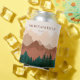 This can cooler is perfect for fall-themed mountain weddings. The design features a rust terracotta mountain range with olive green trees.