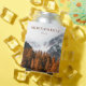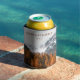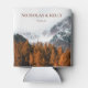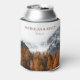 This can cooler is perfect for fall-themed mountain weddings. The design features rust terracotta forest trees and snowy mountains.
