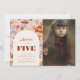 This cute girl's birthday photo invitation features a blush pink background with mushrooms, wildflowers, and fall/autumn leaves. The reverse side features a pink background with floral patterns. Personalise for your needs. You can find more matching products at my store.