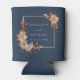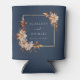 Fall Navy Blue Can Cooler. Celebrate your special day with personalised can coolers featuring the bride and groom’s names, designed to match the "Navy Blue & Terracotta Fall Wedding Invitation Collection." The beautiful autumn florals against a deep navy background add elegance to this practical favour. Let each cooler keep drinks chilled and guests delighted with a touch that’s uniquely yours.