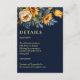 Fall navy blue rustic sunflower wedding details enclosure card