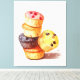 With a playful and cute style, this illustration features a moment of disaster- the tower of muffins standing tall before toppling over. The bright and bold colours add a fun touch to this charming scene. Perfect for anyone who loves cuteness with a little drama, this design is sure to bring a smile to your face.