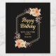 Fall Orange Flower Gold Black Happy Birthday Wine Label