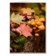 Maple leaves, moss, and orange mushrooms for autumn notes.