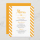 Fall Orange Stripe Menu Wedding Bridal Shower