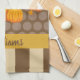 Warm your home this autumn with this custom last name kitchen towel. Its modern design features stripes of brown and tan and a soft background of light brown polka dots. A pumpkin and fall leaves complete the look and are displayed elegantly above a gold stripe for your family name. This towel is customisable and makes a great personalised fall gift for a housewarming, bridal shower, wedding, birthday, Thanksgiving, or other holiday!
