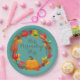 Fall pumpkin autumn leaves wreath teal orange paper plate