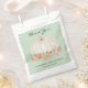 This fall baby shower favour bag features a watercolor pumpkin and rustic greenery on a soft green background. Perfect for an autumn boy, girl, or gender-neutral baby shower. Easily customisable.