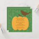 Start you Autumn Thanksgiving Party off right with our Thanksgiving Invitation featuring a beautiful fall pumpkin with a bird perched on top with a green leaf background. ©Cocoa Studio