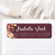 Autumn pumpkin foliage wedding return address label with your names in white elegant handwritten script on a burgundy background with a stylish touch of fall foliage and pumpkins. Simply add your names and address. Exclusively designed for you by Happy Dolphin Studio. If you need any help or matching products please contact us at happydolphinstudio@outlook.com. We're happy to help you make your wedding the most beautiful day!