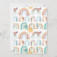 "Fall Pumpkin Foliage Rainbow Mustard Peach Boy, Girl or Gender Neutral Baby Shower Invitation." Warm earth tone colours with a modern, simple, hand painted mustard, blush and terracotta rainbow with a white pumpkin and baby pumpkin, with dried fall foliage and terra-cotta butterflies. The reverse side has many warm-hued rainbows and cute elements and can have the background colour changed. Art by internationally licensed artist and designer, Audrey Jeanne Roberts, copyright.