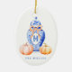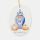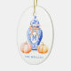 This chic design features chinoiserie ginger jar with a blue monogram and an orange bow surrounded by pumpkins. You can personalise with your monogram initial and your name.