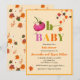 Fall pumpkin baby girl. Oh Baby Shower Invitations with beautiful whimsy pink pumpkin and falling autumn foliage and daisies in yellow and orange. Original and watercolor details painted by me! With fun and bright typography.