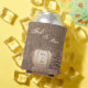 Fall In Love pumpkin white gold elegant wedding reception beer can cooler. Metallic background texture. Beautiful rustic autumn pine cone design favour gifts. Image copyright Marg Seregelyi Photography.