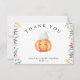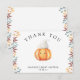 "A little pumpkin is on the way. Celebrate with this baby cartoon pumpkin themed for baby shower party! Watercolor cute cartoon kawaii pumpkin with autumn hat (cap) and fall leaves. On the reverse side of the card are autumn leaves.