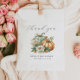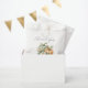 This sweet baby shower thank-you favour bag features a watercolor image of two pumpkins in pastel shades of sage green and orange, adorned with white and orange flowers. Above, the words "thank you" appear in elegant charcoal grey handwriting script. Personalise the text with the name of the mum-to-be and the date in charcoal grey sans serif font. Ideal for a gender-neutral fall baby shower.