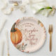 Personalise these pretty Pumpkin Spice paper plates for a splendid Fall baby shower! Celebrate abundance with a plump punkin and botanicals in a boho Autumn watercolor style.