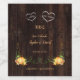 Romantic design featuring "I DO, ME TOO" typography inside two hearts, mason jars string lights, watercolor pumpkins and leaves, on an old barn. Use Personalise tool to add your info. See, also, my Rustic Fall Collection.