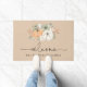 This rustic fall front door mat features three pumpkins in orange, sage green and white with some fall greenery. It will be the perfect addition to your home's fall or thanksgiving decor. It features the text "welcome" in modern typography. Use the template fields to add your information and customise this doormat. Contact the designer if you need assistance with adding your information.