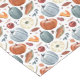 This design features a beautiful autumn-themed pattern with a focus on pumpkins and other fall harvest elements. The design includes various pumpkins in shades of orange, cream, and muted blue, each detailed with subtle watercolor textures. Complementing the pumpkins are elements like corn on the cob, autumn leaves in warm earthy tones, berries, and slices of pumpkin pie. The pattern is set against a crisp white background, allowing the rich colours and detailed illustrations to stand out. This design captures the essence of the fall season, evoking feelings of warmth, harvest, and festive celebration.