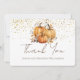 A gorgeous tfall p;umpkin themed thank you card. This fabulous invitation features rustic fall autumn pumpkins with leaves in warm earthy browns and orange colours. Easy to personalise with your own wedding, birthday or other thank you details.