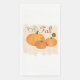 Napkins for your table or to use as guest towels in the bathroom. Text says Fall. Orange pumpkins and cream background
