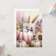 Minimalist calligraphy text birthday party invitation with a watercolor background of fall leaves and fall pumpkins in neutral fall colours.