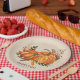 These beautiful, rustic 9" paper plates with watercolor pumpkins and fall leaves on a craft paper style background with your last name will look beautiful on your table. They will definitely add that finishing touch you've been looking for to grace your fall and Thanksgiving tables.