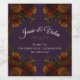 These elegant style wedding invitations have a rich and beautiful purple background with rustic orange autumn botanicals, flowers and leaves on the corners. They are perfect for an autumn style event in the fall with deep purple and rich dark colours.