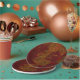 Autumn rustic red gold neon dark elegant maple leaves fall themed wedding. Fall round paper plates. Image copyright Marg Seregelyi Photography.
