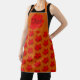 Bib apron for fall with bold red leaves pattern on rust orange. Solid orange at top with "Chef" text over paintbrush red background. Customise the text with anything that will fit, such as "mum" "dad" or a name.