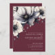 This modern wedding invitation design features a burgundy background on both the front and back, adorned with elegant anemone flowers. The black, grey, and cream-coloured flowers create a classic but whimsical look, complemented by off-white fonts and modern lettering. This design is fully customisable and works perfectly for autumn, fall, winter, or any time you want a deep red merlot colouring. You can edit all the text to your own information and even change the background colour to anything you like. Additionally, there are other similar styles available in this design. Modern Elegant Fall Romantic Burgundy Floral Wedding Invitation. Available as a printed invitation, or as a downloadable digital invite that you can send in e-mail or have printed locally!