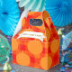 Cartoon style pumpkin drawing. Custom favour boxes. Old print, vintage effect applied to the image. .