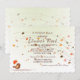 A delightful invitation featuring blowing autumn leaves and a little bird holding an orange umbrella. Want to save money? Print on the basic square corner paper.