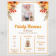 Perfect for fall farm, pumpkin or sunflower theme parties. Remember all of your one year olds precious moments with this custom first birthday milestone poster. This fun fall birthday poster can be customised using the personalisation feature.