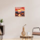 Fall Sunset on the Mountain Watercolor Faux Mat Poster