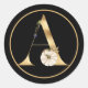 FALL THEME GOLD MONOGRAM A WITH PUMPKINS CLASSIC ROUND STICKER