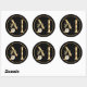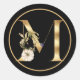 FALL THEME GOLD MONOGRAM M WITH PUMPKINS CLASSIC ROUND STICKER