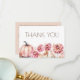 Fall themed boho bridal shower wedding thank you cards, dusty pink pumpkin dahlias pampas grass thank you card
