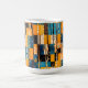 Fall Trees Autumn Leaf Colours Patchwork Pattern ceramic coffee mug in golden yellow, turquoise blue and black. Brighten up your mornings and afternoon pick me ups with this beautiful woodland mountain nature inspired fall leaves and trees pattern mug. Warm cosy outdoor vibes for your autumn coffee breaks. These autumn patchwork pattern coffee mugs make a charming gift that will delight family and friends.