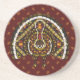 A turkey masks an elegant, Thanksgiving themed mandala, featuring Native American patterns and modern icons in shades of red, yellow, and orange for fall.