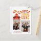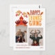 Holiday greeting card featuring a colourful festive phrase "Happy Thanksgiving" with a turkey and two photos of your choice. Personalised this greeting card with your name and year.