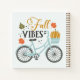 The "Fall Vibes" design is a charming and whimsical illustration that perfectly captures the essence of autumn. The central element of the design is a vintage-style bicycle rendered in a soft, pastel blue colour. The bicycle has a classic, retro look with curved handlebars and a basket attached to the front.