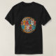 I give wanted to give this a 4 instead of a 5 because these Basic DARK T0shirts run unexpectedly SLIM or Narrow. Which is great if you do not have a potbelly, but I have a paunch. It isn't the shirt's fault that I've got a beer belly. The design and shirt itself is a quality cotton shirt. The color is more of a deep purple, but still a very pretty color. The Basic DARK T-shirts run a bit SLIMMER than the Basic Ts. The neck is a fraction narrower (or seems to be narrower) also. I'm a paunchy middle-aged woman and my neck is 12 inches (31cm) thick and the neckline fell about the same as in the photo of the man, and I had the desire to tug it a bit. So if you're a thick necked man or like loose shirts, be aware these are slimmer shirts. Once I get rid of my lockdown paunch it'll look great. The shirt washed well in cold water with no apparent bleeding. We don't have a dryer, so it hung dry. Did not shrink. Love the colors and the design. The design looks smaller on my shirt than it does on the model on-line. But still, it looks good on the shirt. The printing looks as it does on the model, just the size seems fractionally smaller. Washed garment in cold water, hung dry and design appeared unaffected.