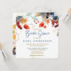 Celebrate the bride-to-be with this stunning bridal shower invitation, featuring a beautiful fall watercolor floral design. Rich, earthy tones of deep burgundy, golden yellows, soft peach, and warm amber are blended in delicate brush strokes, creating a charming, cosy feel. The vibrant florals gently frame the edges of the invitation, adding a touch of seasonal elegance without overwhelming the design.