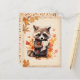 Fall vibes postcard featuring a watercolor racoon holding a letter.