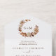 Fall | Autumn Watercolor Floral Wreath Leaves Wedding All in One Invitation. This elegant and rustic wedding invitation features hand-painted watercolor burnt orange and terracotta leaves, cream and beige dahlias, and beautiful rust-coloured roses on a white background. All in one wedding invitation and RSVP card. Matching items are available in the Autumn Romance Wedding Collection.