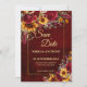 Fall wedding burgundy roses yellow sunflowers save the date