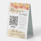Paying via Venmo is a fun way for wedding guests to gift money for your wedding honeymoon. Include this Venmo sign as part of your fall wedding decorations. A polite and fun way of asking for money during your wedding shower or reception. Add your own Venmo QR code image to your honeymoon fund sign. Change the text and wording to ask for Venmo honeymoon fund to match your own style. Order several honeymoon fund signs to display at your wedding reception, at your gift table, guest book table, and other locations in your reception hall. This Venmo display sign can also be used at your honeymoon bridal shower. A fall wedding theme with colourful fall leaves.